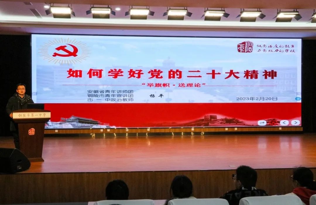 本次宣讲主题鲜明,内容丰富,深入浅出、贴近实际,既有理论高度,又有实践深度,为铜陵一中学习宣传贯彻党的二十大精神指明了方向,有力推动了党的二十大精神在学校教育教学各项工作中落地生根。
