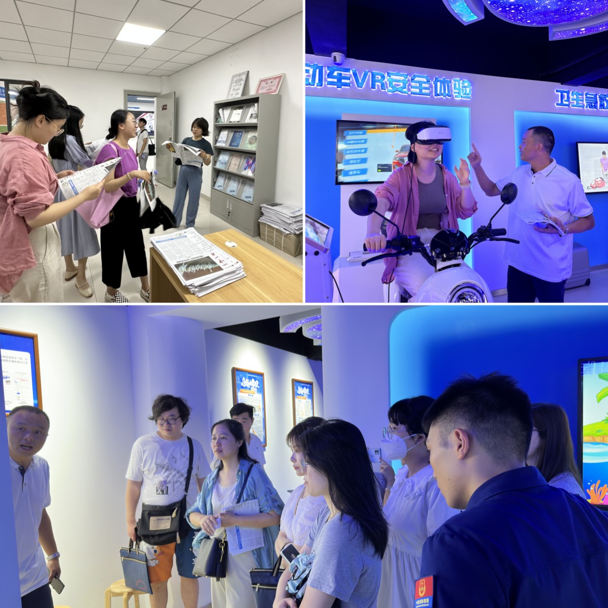 最后,全体学员赴铜陵市第一中学,调研“党、团、队”一体化育人链条打造情况。大家先后参观了同理心实验室、美育中心和辅礽图书馆。工作人员先后就反诈综合体验系统、公共安全知识教育系统、交通安全教育系统、心肺复苏急救体验系统、电动车VR安全体验等项目进行了详细介绍,学员参与并做了演示;此外, 还欣赏了学生们的美术、书法作品,参观了教师阅览室、学生阅览室、“桂山书院”微讲堂和乐享学术沙龙等多个功能室。