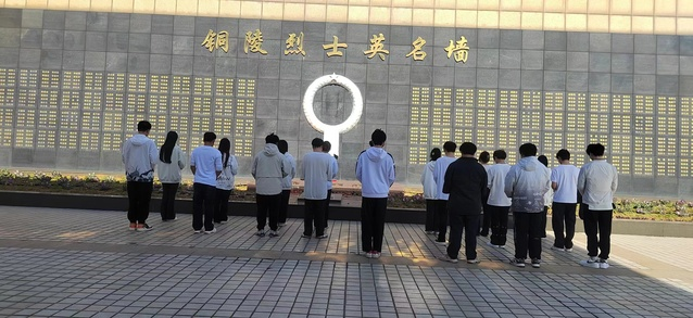 园内庄严肃穆,同学们有序来到纪念碑前三鞠躬,献花以示追忆。同学们通过参观了解到铜陵烈士纪念馆的由来,通过聆听讲解员讲解重温了我们党的发展历程,了解了革命先烈为了新中国的成立慷慨献身、舍生取义的诸多事迹,深刻感悟中国共产党对新中国的成立发挥的至关重要的作用,更加深刻的理解那句“没有共产党 就没有新中国”的历史涵义。