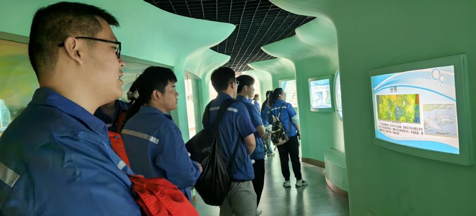 近日,央视《新闻直播间》“十年禁渔看长江”特别节目两次直播铜陵淡水豚国家级自然保护区,介绍铜陵长江十年禁渔成效及推进长江生态修复举措。虽然长江生态持续转好,江豚逐浪的美好画面频繁出现,但全国江豚数量仅有一千多头,江豚保护工作依旧严峻。为了解江豚保护工作,公司团员和青年志愿者坐轮渡来到了铜陵市国家淡水豚自然保护区对江豚进行近距离地观察和学习。刚好赶上十点钟的喂养时间,团员和青年志愿者近距离观看了江豚们快乐觅食的画面。随后,大家参观了保护中心宣教馆,详细了解了江豚的进化历史、生活习性,更认识到江豚保护工作的紧迫性和重要性。