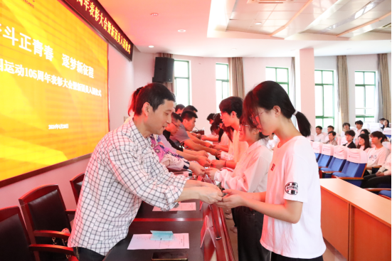 为继承和发扬以爱国主义为核心的五四精神,纪念五四运动105周年,深入学习宣传习近平新时代中国特色社会主义思想,引导团员青年坚定听党话、跟党走的人生追求,4月28日下午,学院在阶梯教室201举行纪念五四运动105周年表彰大会暨新团员入团仪式。学院党委副书记范清义,学院党委委员、副院长黄仕银,组织人事处、学生处、团委、二级院系党支部负责人,团总支书记以及师生代表近300人参加会议。