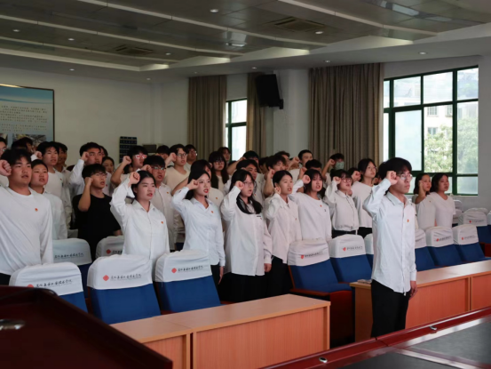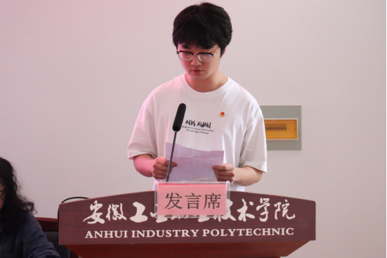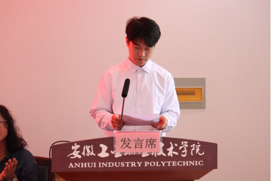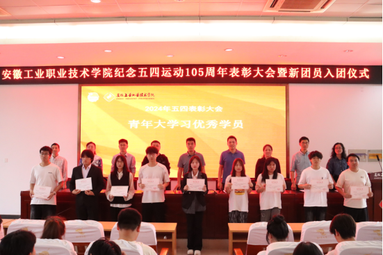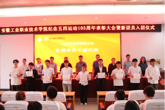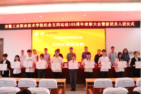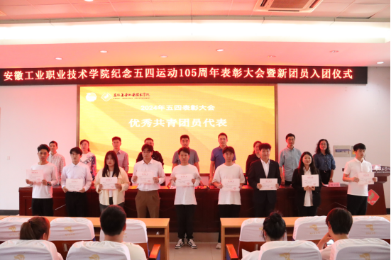 表彰大会在雄壮的国歌声中拉开序幕。组织人事处负责人宣读《安徽工业职业技术学院关于2024年度发展新团员的决定》,出席会议的领导为新团员发放团徽和团员证,随后进行了新团员入团宣誓。