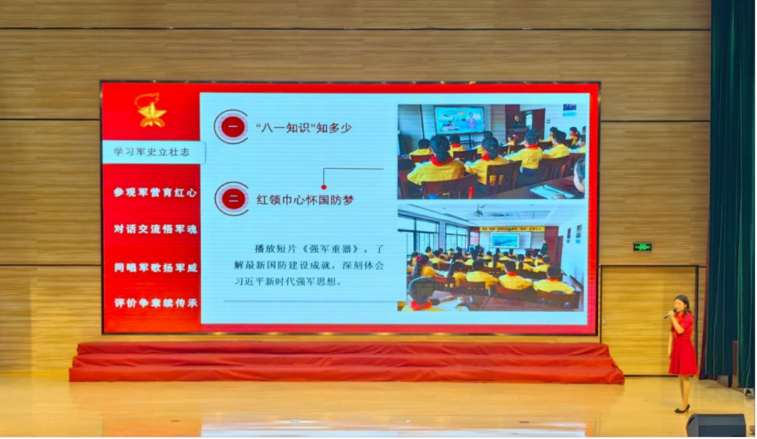 辅导员汪梦倩以《学光荣军史,感雄壮军威——红领巾寻访强军梦》为课题,立足四年级“政治启蒙”的课程目标,带与会人员感受了一堂丰富有趣“寻访强军梦”的少先队活动课。