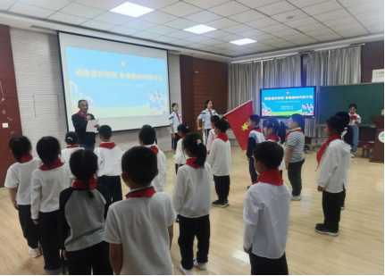 10月13日,铜官区少工委在铜陵市柳园小学开展主题活动,以庄严出旗、奏唱队歌开场,入队仪式上宣布新队员名单、高年级队员为新队员戴红领巾、所有队员共同宣誓,学校领导致辞鼓励新队员;退旗仪式在整齐呼号中完成,活动强化了队员“强国复兴有我”的责任担当,激励他们勤学奋进。