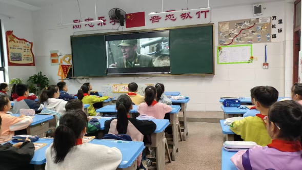 义安区实验小学少工委组织三至六年级队员们观看《黎明阻击》《浴血山河》等战争题材影片,革命先辈浴血奋战的场景震撼人心,让队员们深刻体会到今日幸福生活的来之不易。