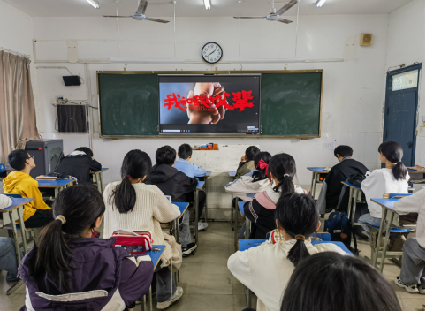 横埠中学少工委组织初一、二队员们观看《黄金战士》,观影期间队员们聚精会神,真切感受到了抗战年代的艰苦卓绝,更深刻体悟到抗战精神中“天下兴亡、匹夫有责”的爱国情怀。