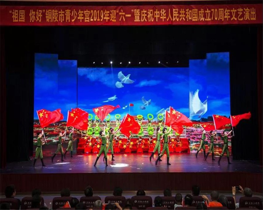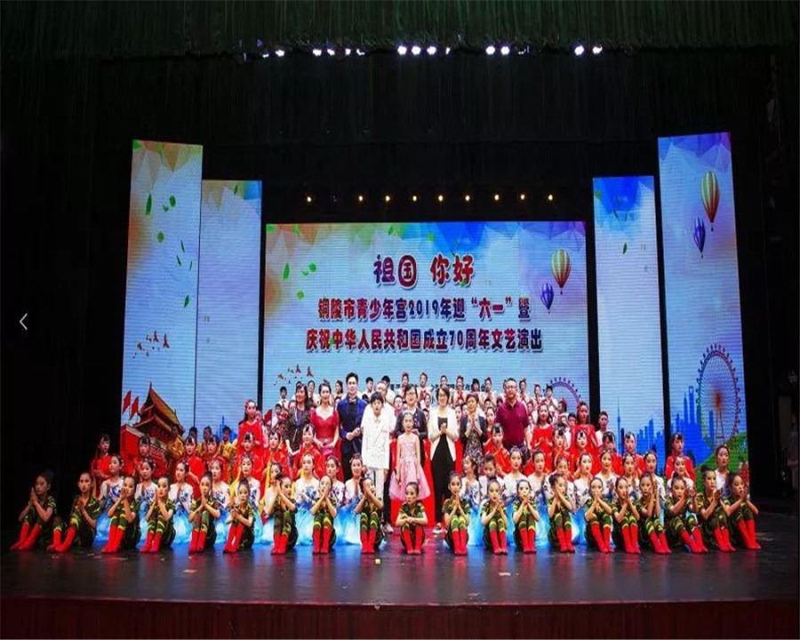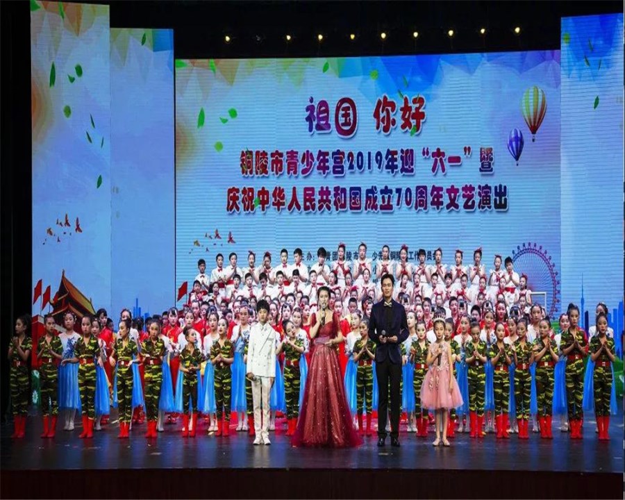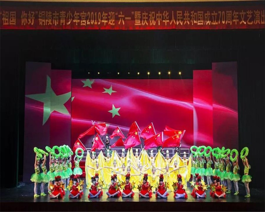 别开生面的演出,既是向中华人民共和国70华诞的献礼,又充分展示了市青少年宫师生们自信的风采和突出的才艺。整台演出尽情抒发着铜都少年们“爱祖国爱家乡”的美好情怀,让晶莹的童心在节日里快乐飞扬!
