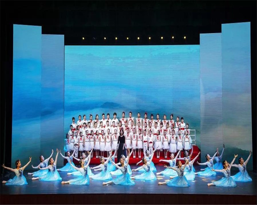 5月30日下午,铜陵市青少年宫2019年“祖国你好”迎“六一”暨庆祝中华人民共和国成立70周年文艺演出在市五松山剧院隆重举行。演出由团市委、市少工委主办,市青少年宫小铜星艺术团承办,市音协和市舞协协办,团市委、市文明办、市教体局、市妇联、市青少年宫等单位负责人及部分青少年宫退休职工、普通市民观看了演出。