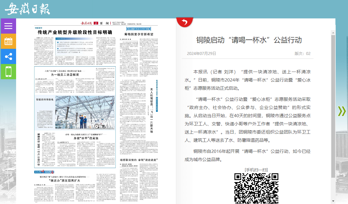 《安徽日报》报道《铜陵启动“请喝一杯水”公益行动》