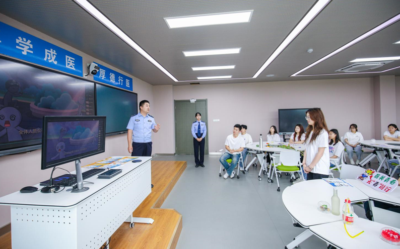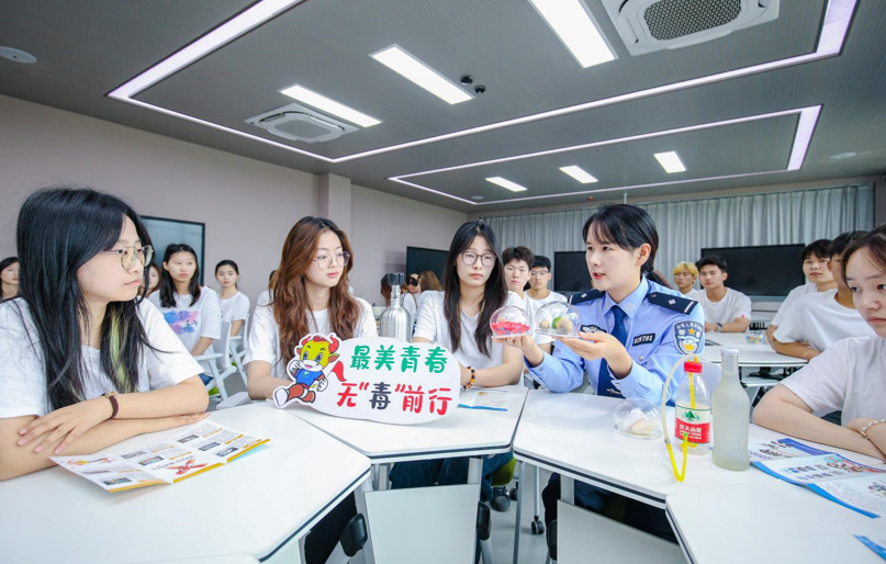 “毒品是全人类的公害。中华民族对毒品更是有着特殊历史之痛——180多年前,西方列强向我国大肆倾销鸦片,进而发动两次鸦片战争,给中华民族带来深重灾难……”来自市禁毒办民警从历史角度出发,详细向同学们介绍了禁毒相关知识。同时结合禁毒教育视频,通过真实案例让同学们直观感受毒品的危害性,学习禁毒法律法规,提高防范意识,远离新型毒品。