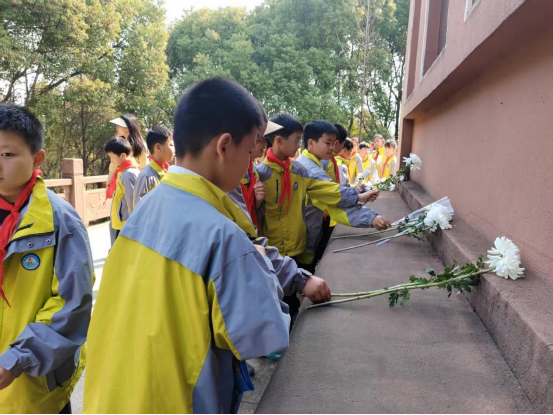 活动现场庄严肃穆,少先队员们手持白色菊花整齐列队。在烈士纪念塔前,全体人员怀着崇敬心情向革命先烈鞠躬致敬。随着《献花曲》缓缓响起,少先队员代表向烈士敬献花篮,鲜艳的红领巾与白色的菊花交相辉映。默哀仪式中,孩子们低头默哀,深切缅怀为民族解放事业英勇献身的革命先烈。