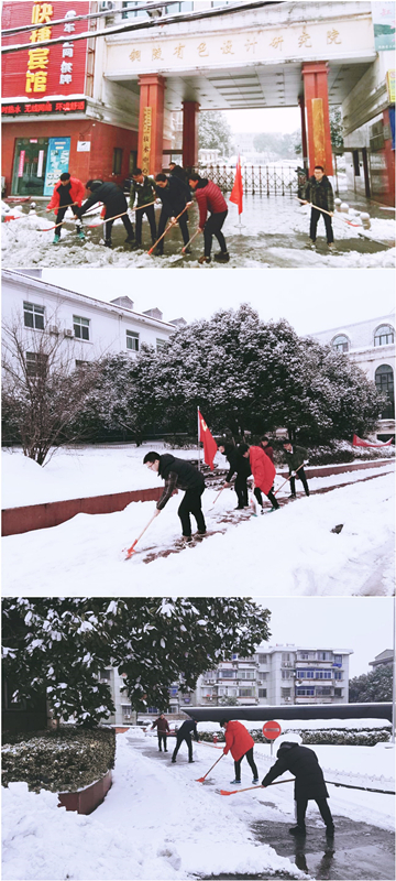 连日降雪造成道路交通不便、出行困难,1月28日下午,为了给周一上班营造安全出行环境,铜陵有色技术中心志愿者积极行动,团结一心,利用周末休息时间再次开展铲雪除冰志愿行动,不仅清除了院区内部道路积雪,还将单位门外道路冰雪一并清除,以实际行动彰显“各人自扫门前雪 更管他家瓦上霜”的文明单位力量,充分发挥了党员、团员青年的生力军和突击队作用。(供稿:铜陵有色技术中心团委)
