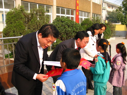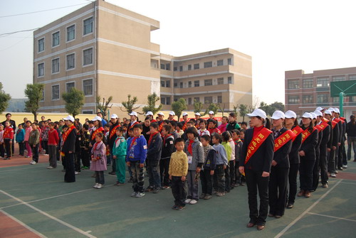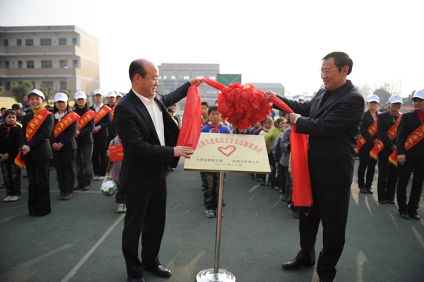 12月2日下午,团市委在横港小学举行“2手牵1手”关爱农民工子女行动暨共青团关爱农民工子女志愿服务站揭牌仪式,团省委副书记汪华东、团市委书记周天伟、团省委宣传部部长时至远、团省委学少部部长王芳、团市委副书记胡江红、铜陵供电公司工会主席熊永道出席了仪式。横港社区、横港小学等单位负责同志和20名“阳光电力青年志愿者”、200名少年儿童参加了仪式。