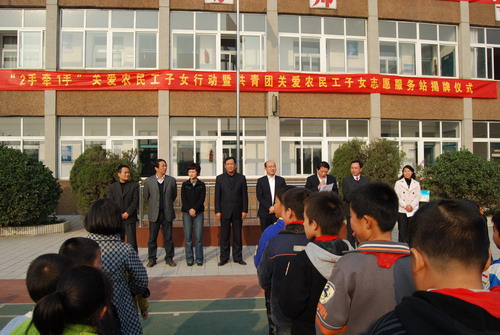 团市委举行“2手牵1手”关爱农民工子女行动暨共青团关爱农民工子女志愿服务站揭牌仪式