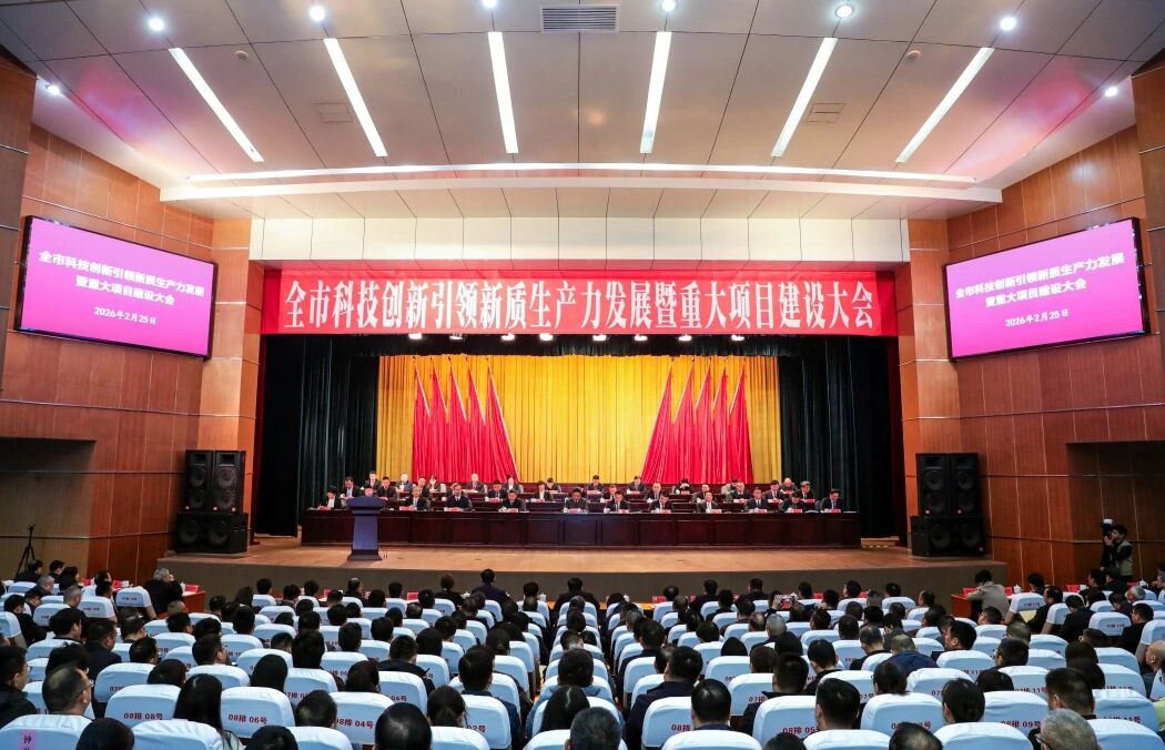 2月25日上午,全市科技创新引领新质生产力发展暨重大项目建设大会在市行政会议中心召开。市委书记杨宏星出席会议并讲话,强调要深入学习贯彻党的二十届四中全会和习近平总书记考察安徽重要讲话精神,坚决贯彻省委、省政府决策部署,聚力答好省委“创新之问”,坚持科技打头阵,下好创新先手棋,推动科技创新和产业创新深度融合、双招双引和项目建设量质齐升、工作作风和发展环境向好向优,以创新一子落带动发展满盘活,奋力实现“十五五”开好局、起好步。市委副书记、市长孔涛主持会议。市领导张梦生、吴祚麓、郑刚、胡启书、杨如松、杨文萍、马军等出席会议。铜陵有色集团公司党委书记、董事长丁士启等荣获2025年度特别重大贡献奖、重大贡献奖、上市公司贡献奖和五星、四星企业负责同志应邀在主席台就座。